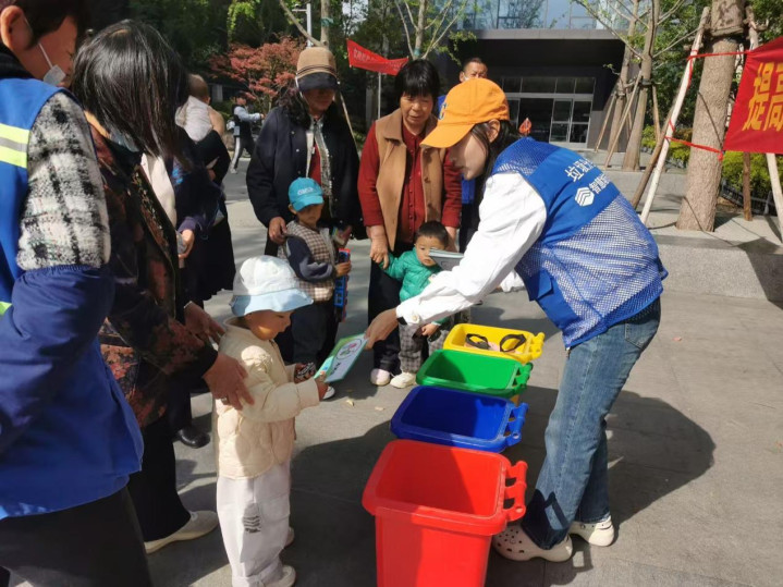 活动现场,工作人员用通俗易懂的语言,将自己身体力行进行垃圾分类的方法向大家进行了分享。一般家中果皮菜叶、剩菜剩饭可归为厨余垃圾,纸张塑料、玻璃金属可放入可回收物桶,废电池、过期药品投入有害垃圾桶;外出踏青时要随身携带垃圾袋,不乱扔杂物,自觉做好分类投放——我们日常每一个用心分类的小小的举动,都是在为春日添绿,为环保助力。 活动现场还设置了“分类投投乐”和“分类小能手”抢答两个互动环节,居民可免费参与。答对题目或正确投放垃圾的居民,均获得了精美小礼品,现场气氛热烈,大家踊跃参与。